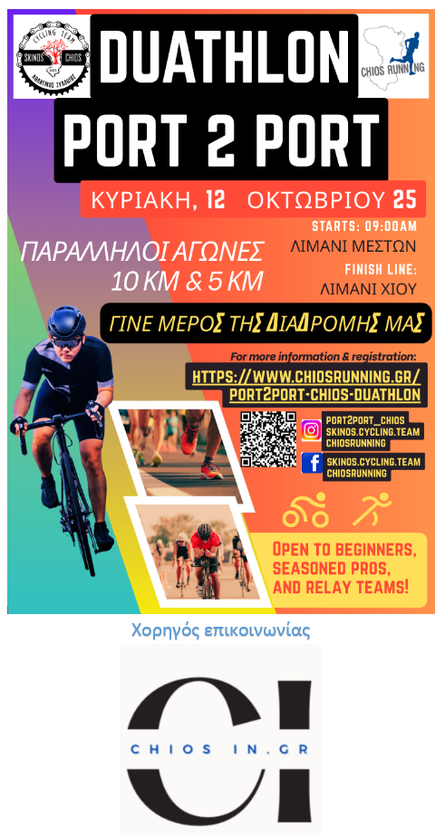 Το Port2Port Chios Duathlon 2025 δεν είναι απλώς ένας αγώνας είναι ένα ταξίδι μέσα στη φύση, την ιστορία και τον πολιτισμό του τόπου μας.
