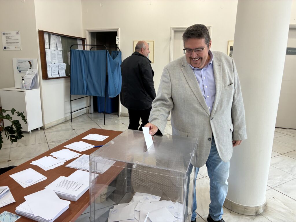 Μιχ. Μαύρης: Ξεκινάμε με όραμα και όρεξη για δουλειά δήλωσε ο Νέος Πρόεδρος της ΔΕΕΠ Χίου που προσήλθε να ψηφίσει συνοδευόμενος από την βαφτισιμιά του.