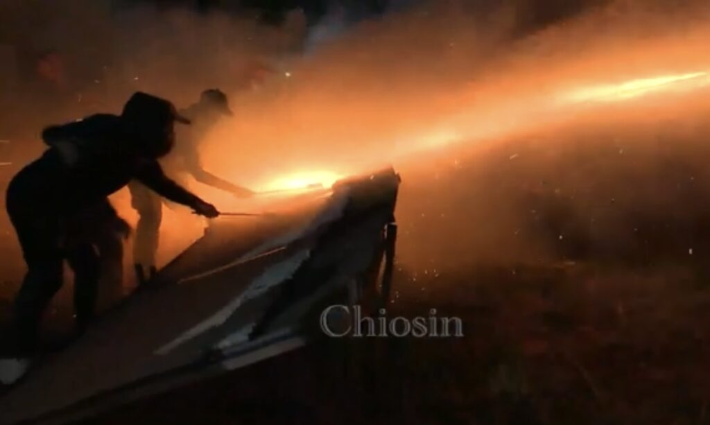 Με Φαντασμαγορικό τρόπο τελέστηκε το βράδυ του Μεγάλου Σαββάτου (04/05) στο νησί της Χίου το πασίγνωστο έθιμο του ρουκετοπόλεμου στον Βροντάδο.