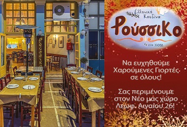 Το εστιατόριο Ρούσσικο σας εύχεται Καλά Χριστούγεννα και ευτυχισμένο το νέο έτος. Θα είμαστε ανοιχτά καθημερινά για την περίοδο όλων των εορτών!
