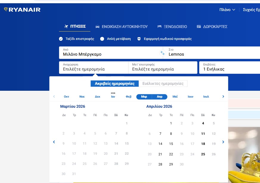 Η Ryanair συνδέει το Μπέργκαμο με τη Λήμνο – Νέα αεροπορική γραμμή από 1η Απριλίου