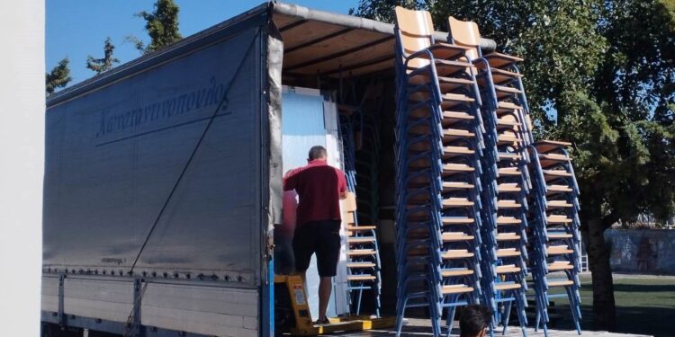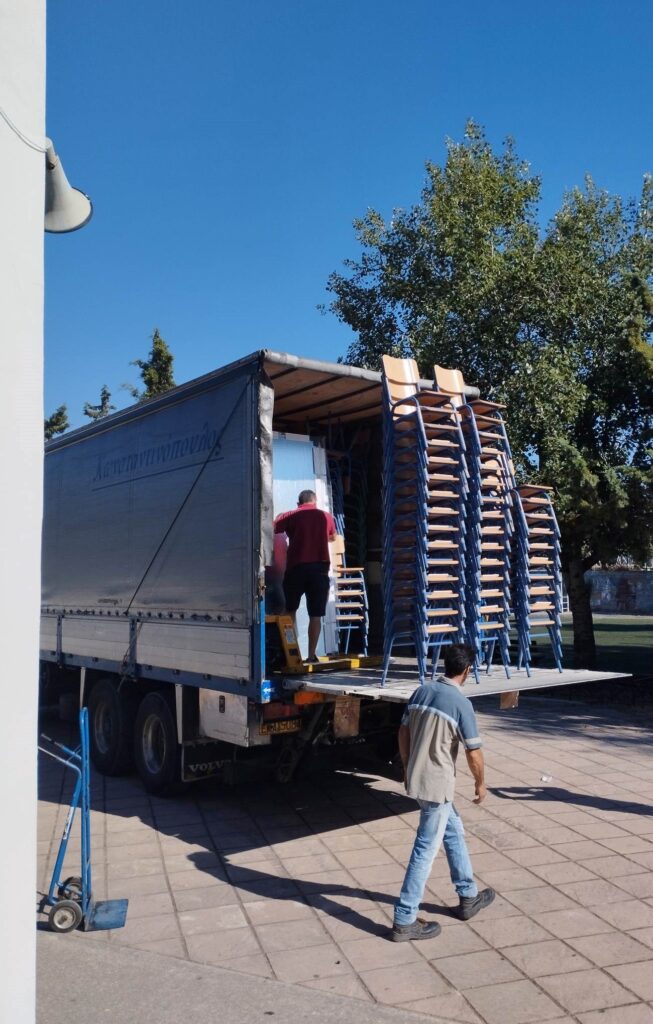 Mοιράστηκαν σήμερα Δευτέρα 10 Ιουλίου 2023από την ιδιωτική μεταφορική εταιρεία Κωνσταντινόπουλος, την συμβεβλημένη με την «Κτιριακές Υποδομές ΑΕ» (πρώην ΟΣΚ) εξοπλισμός (θρανία, καρέκλες, βιβλιοθήκες, γραφεία, πίνακες, παιχνίδια κ.ά.) στα παρακάτω 11σχολεία της Χίου: