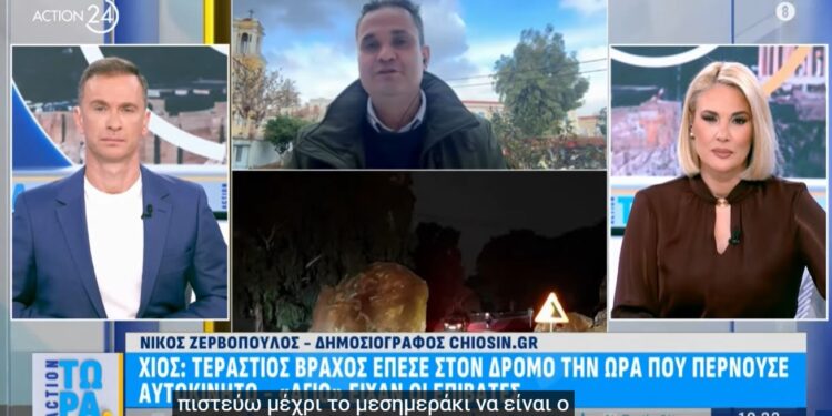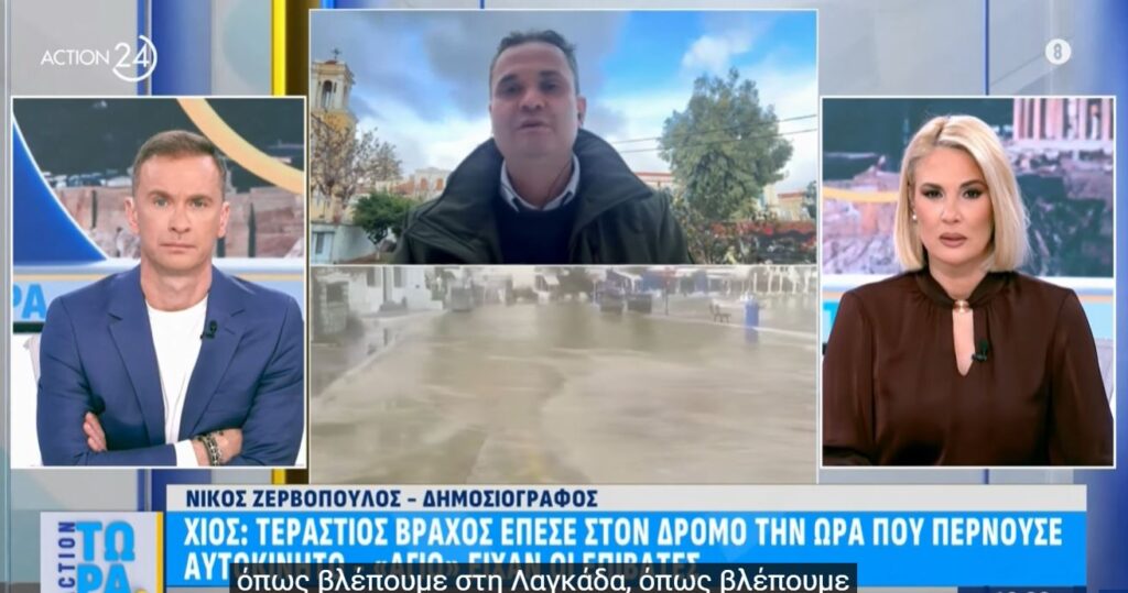 Τεράστιος βράχος έπεσε σε δρόμο λόγω της σφοδρής βροχόπτωσης στη Χίο μεταξύ των θέσεων Δελφίνι και Σαραπιό. Το συμβάν έκανε τον γύρο του διαδικτύου, παρουσιάστηκε στα δελτία ειδήσεων ενώ στην εκπομπή ACTION ΤΩΡΑ με τον Γιώργο Γρηγοριάδη και την Ντόρα Κουτροκόη σε ζωντανή σύνδεση με τον δημοσιογράφο Νίκο Ζερβόπουλο από τη Χίο αναφέρθηκαν οι ζημιές της κακοκαιρίας στο νησί.