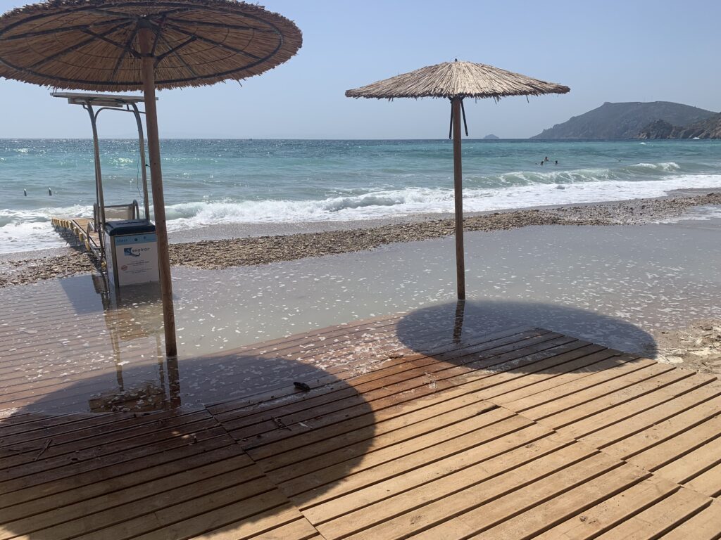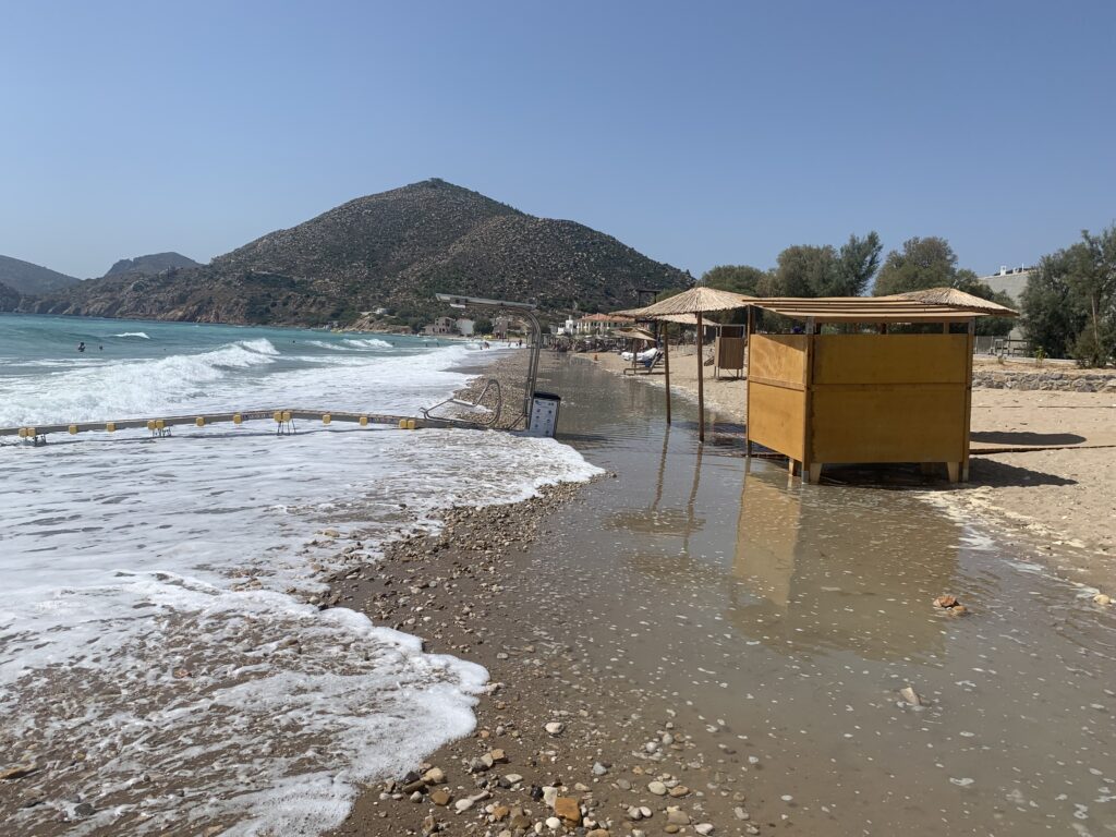 Κώμη: Τα κύματα βγήκαν στη στεριά, λόγω των ανέμων που πνέουν στην περιοχή που έφεραν τα κύματα στην παραλία. Τελευταία μέρα του καλοκαιριού και οι λάτρεις των κυμάτων το απολαμβάνουν δέοντος.