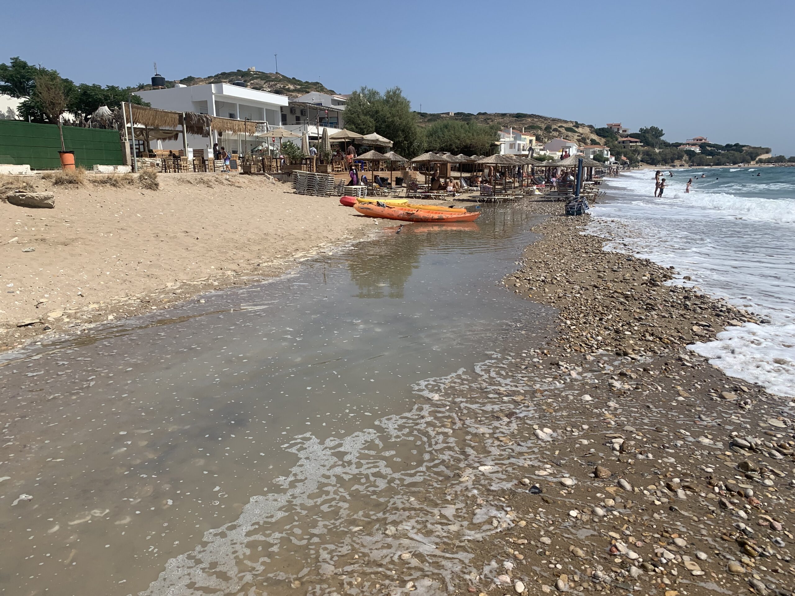 Κώμη: Τα κύματα βγήκαν στη στεριά, λόγω των ανέμων που πνέουν στην περιοχή που έφεραν τα κύματα στην παραλία. Τελευταία μέρα του καλοκαιριού και οι λάτρεις των κυμάτων το απολαμβάνουν δέοντος.