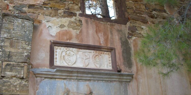 Η κτητορική επιγραφή στο υπέρθυρο της Παναγίας Υπακοής στο Λωβοκομείο της Χίου.