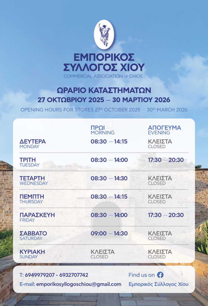 Χειμερινό πρόγραμμα Εμπορικού Συλλόγου Χίου
