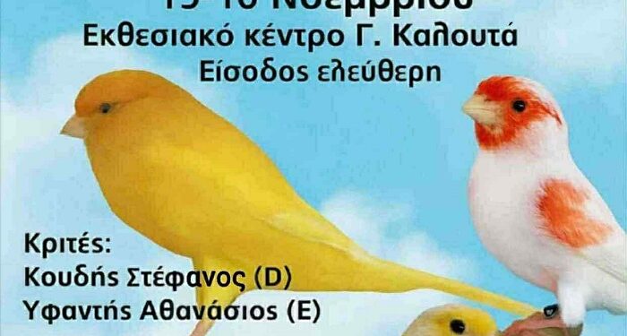 8η έκθεση πτηνών συντροφιάς στις 15 & 16 Οκτωβρίου στο Εκθεσιακό κέντρο Καλουτάς με ελεύθερη είσοδο.