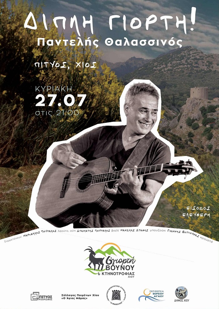 Το κλείσιμο της 6ης γιορτής βουνού και κτηνοτροφίας πραγματοποιήτε με συναυλία του Παντελή Θαλασσινού την Κυριακή 27 Ιουλίου στις 21:00 στο Πιτυός.
