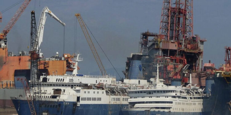 Tα δυο πλοία της Θρυλικής Ναυτιλιακής Εταιρείας Λέσβου, το “Μυτιλήνη” και το “Θεόφιλος” σε μια φωτογραφία που κόβει την ανάσα στα διαλυτήρια της Σμύρνης στην Τουρκία όπου μεταφέρθηκαν πριν λίγες ημέρες, προκειμένου να καταστραφούν.