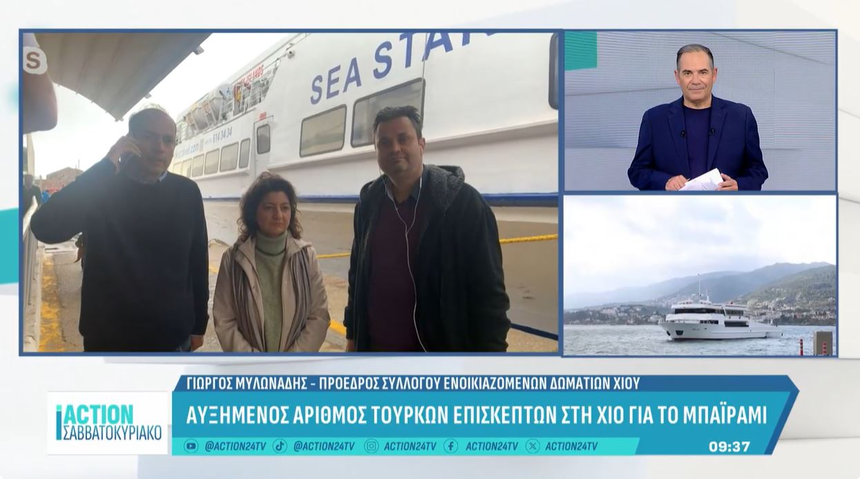 Η Τούρκικη ‘απόβαση’ στη Χίο προβλήθηκε ζωντανά σε όλη την Ελλάδα την ώρα άφιξης του πλοίου από τον Τσεσμέ. Την ώρα που έφθανε το πλοίο η εκπομπή ΑCTION 24 ΑCTION Σαββατοκύριακο με τους Δημήτρη Καμπουράκη και Βαγγέλη Γιακουμή συνδέθηκε στο τελωνείο της Χίου με τον δημοσιογράφο Νίκο Ζερβόπουλο, την Πρόεδρο της Ένωσης Ξενοδόχων Χίου Μήτση Παιδούση και τον Γιώργο Μυλωνάδη Πρόεδρο του Συλλόγου Ενοικιαζομένων Επιπλωμένων Δωματίων, Διαμερισμάτων και Τουριστικών Κατοικιών.