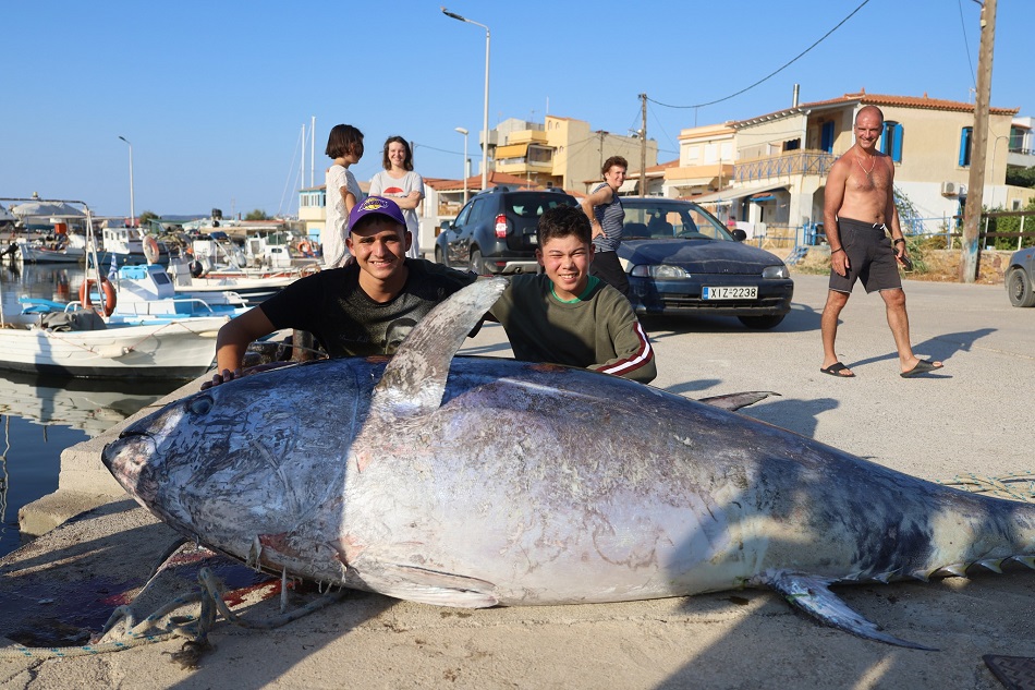 Ο 14χρονος Γιάννης Μυριαγκός (δεξιά στη φωτό δεινός ψαράς από τα… 6 του!) ήταν εκείνος που ανακάλυψε την εγκλωβισμένη προχτεσινή τούνα να κουτουλά στο λιμανάκι της Αγίας Ερμιόνης στις 3 το πρωί και να καταλήγει! Μαζί με το συνομήλικό του Αγάπιο Τσιμπούκα (αριστερ’α στη φωτό) την συγκράτησαν και τη διατήρησαν στην επιφάνεια της θάλασσας μέχρι να τρέξουν προς συνδρομή ο πατέρας του Μιχάλης και ο Θοδωρής Μπατής. Μπράβο τους, αναφέρει σε ανάρτηση του ο Δημήτρης Φρεζούλης