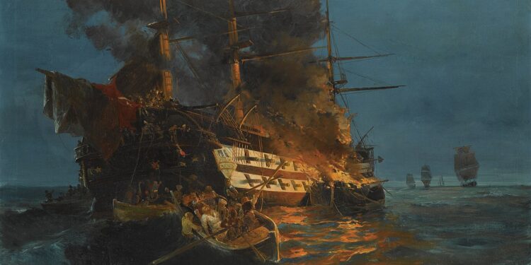 Και ύστερα στη Χίο, στις 6 Ιουνίου 1822 (λίγο μετά τις φοβερές σφαγές) όταν με διοικητή τον Κωνσταντή Μικέ Καναρίου (Κανάρης) ανατινάζουν τη Ναυαρχίδα “Κινούμενο Όρος” του Καρά Αλή.