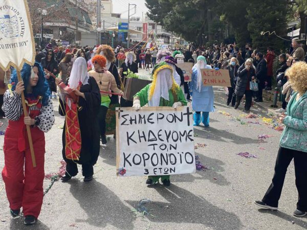 Φωτογραφίες από την όμορφη -χαρούμενη Νεκρική πομπή-περατζάδα από την οδό Χίου κατά μήκος της Καραϊσκάκη,ως το Δημαρχείο-Παλατάκι,όπου σήμερα κηδέψαμε τον Κορωνοϊό..Εμείς τον ΕΨΟΦΗΣΑΕΝ! ΣΤΟΝ ΑΓΥΡΙΣΤΟ και στα ΤΣΑΚΙΔΙΑ να πάει…γράφει η πρόεδρος Μαρία Μπρη-Παπαμακαρίου με τους αυτοσχέδιους στίχους της…..