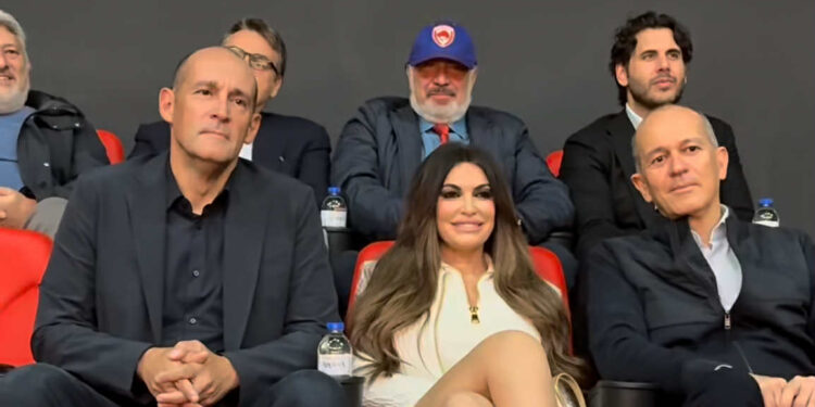 Η Κίμπερλι Γκιλφόιλ στο ΣΕΦ: Η νέα πρέσβης των ΗΠΑ στην Ελλάδα παρακολουθεί τον αγώνα Ολυμπιακός – Ζαλγκίρις ανάμεσα στους αδερφούς Αγγελόπουλους και μπροστά από τον Νίκο Τσακο
