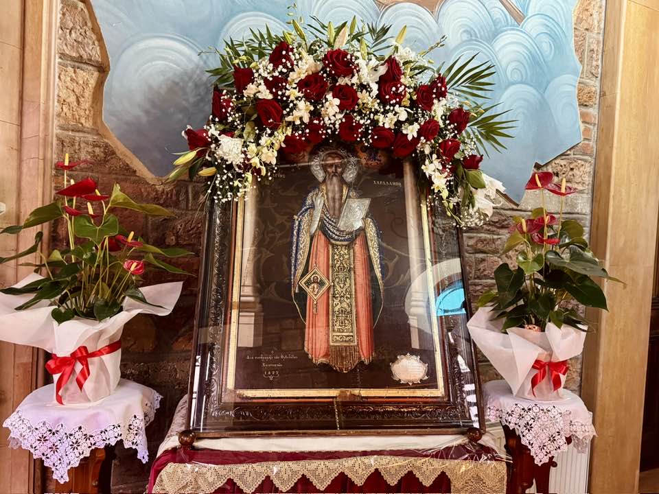 Ὡς στύλος ἀκλόνητος, τῆς Ἐκκλησίας Χριστοῦ, καί λύχνος ἀείφωτος τῆς οἰκουμένης σοφέ, ἐδείχθης Χαράλαμπες· ἔλαμψας ἐν τῷ κόσμῳ, διά τοῦ μαρτυρίου, ἔλυσας τῶν εἰδώλων, τήν σκοτόμαιναν μάκαρ, διό ἐν παρρησίᾳ Χριστῷ, πρέσβευε σωθῆναι ἡμᾶς.