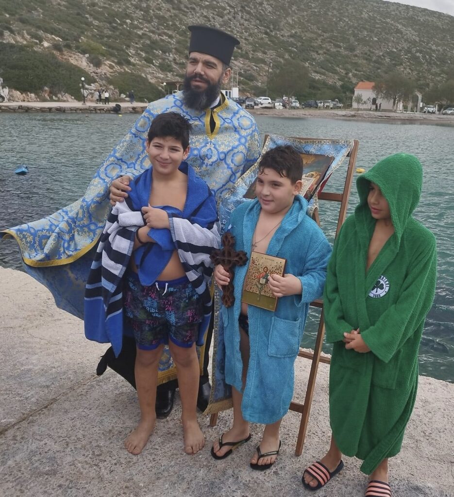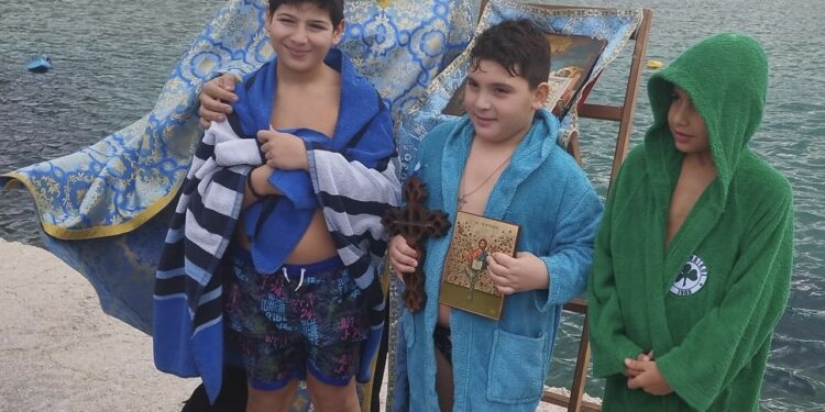 Στην Αγία Ειρήνη Ελάτας 3 μικροί κολυμβητές, μαθητές Δημοτικού βούτηξαν για τον Σταύρο στα παγωμένα νερά.
