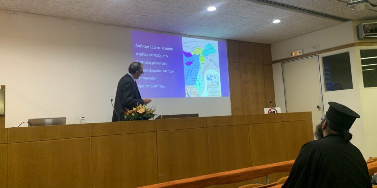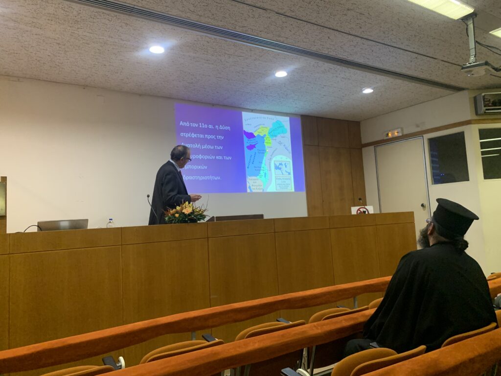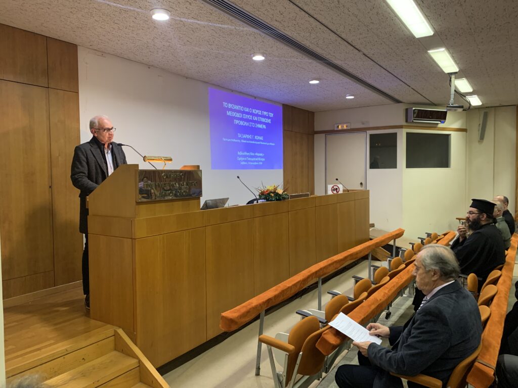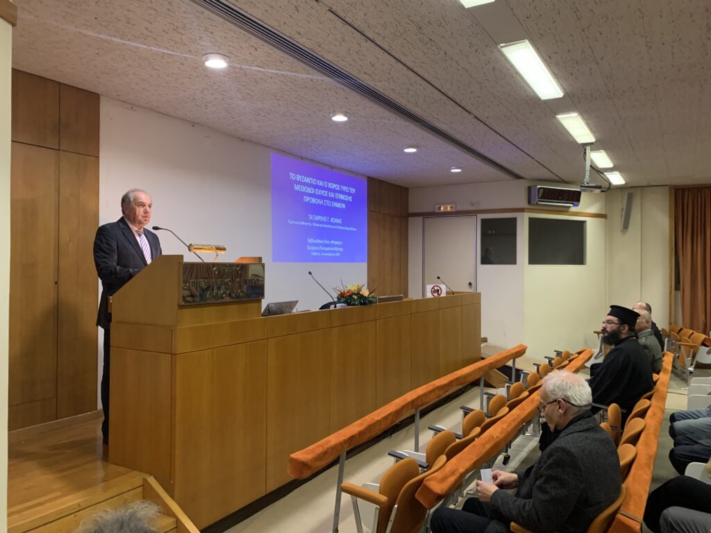 Στη διάλεξη έγινε εν συντομία αναφορά στον ευρύτερο χώρο ο οποίος περιέβαλλε το Βυζάντιο, στις δυνάμεις που είχε να αντιμετωπίσει και θα παρουσιαστούν οι μέθοδοι και οι τρόποι που εφάρμοζε, οι οποίοι του επέτρεψαν να διαδραματίσει επί αιώνες σημαντικό ρόλο στη διεθνή σκηνή. Θα δοθεί η ευκαιρία σε ορισμένες περιπτώσεις να γίνει αναφορά σε σημερινές καταστάσεις.