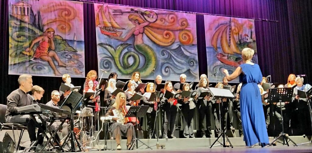 Η πολυπληθής Χορωδία με τις πολυφωνίες και τον άψογο συντονισμό της ήταν εξαιρετική! Στα σόλο , η Ρένα Χούλη μας συγκίνησε με τη λυρικότητα και την κρυστάλλινη φωνή της στο ‘Θεός αν είναι’ , ενώ οι υπέροχες κυρίες Σταματία Κοντού και Παναγιώτα Γαλίτη μας ξεσήκωσαν με το ταλέντο και το μπρίο τους στο ‘Δυνατά-Δυνατά’!