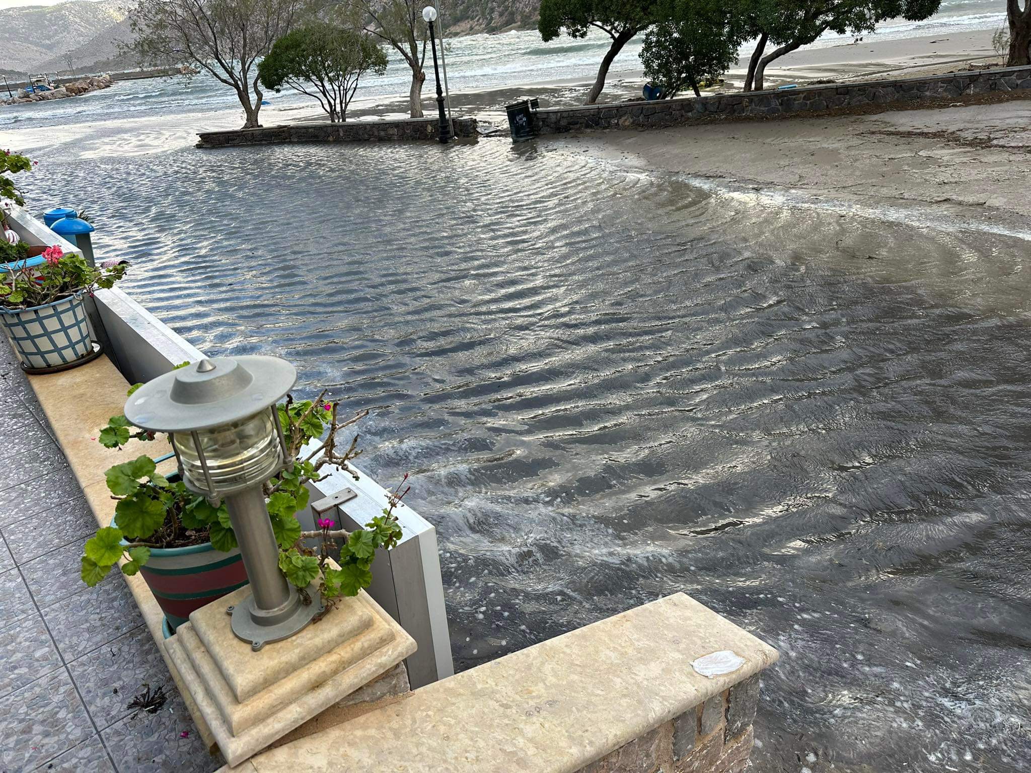 Σαρώνει η Bettina τη Χίο. Στο Λιθί η θάλασσα βγήκε στη στεριά.