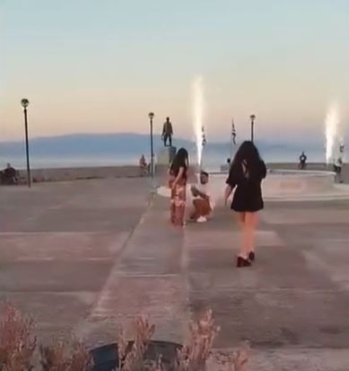 Πρόταση γάμου με πυρσούς στην κεντρική πλατεία Βροντάδου