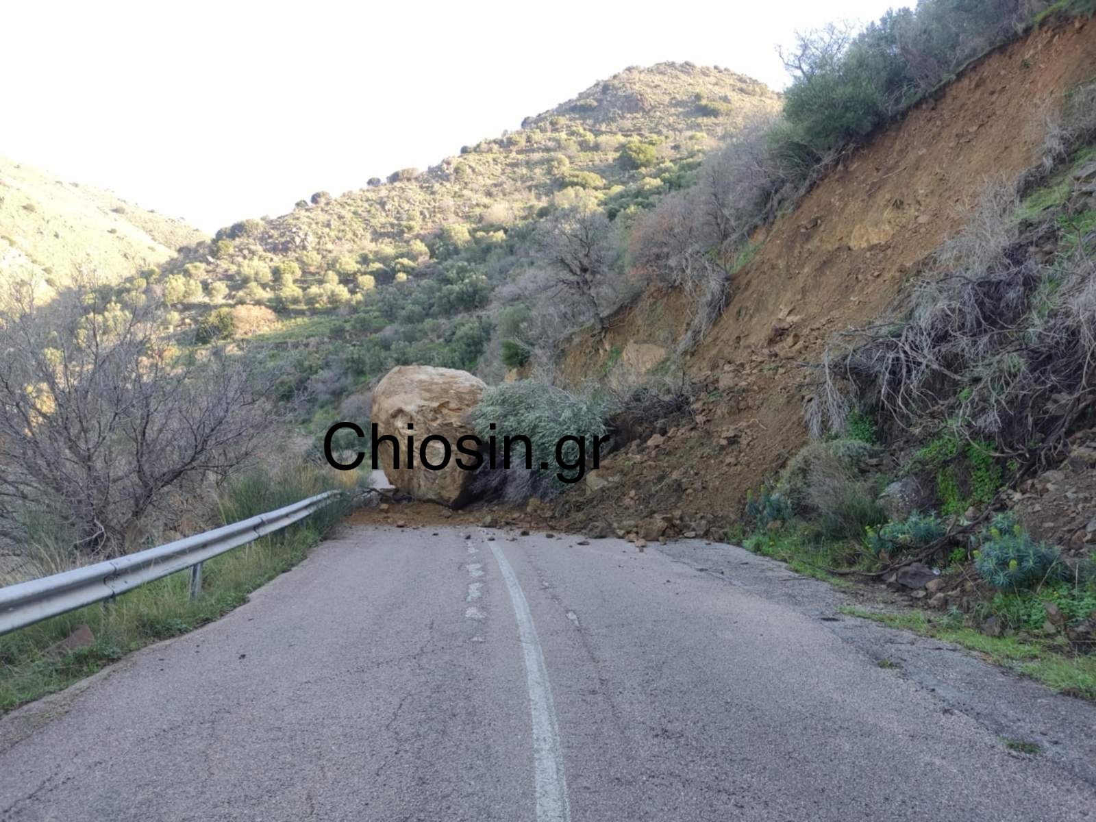 Προσοχή! Πτώση βράχου κλειστός δρόμος μέχρι την μετακίνηση του βράχου στις Τρύπες συρμή Β. Χίο.