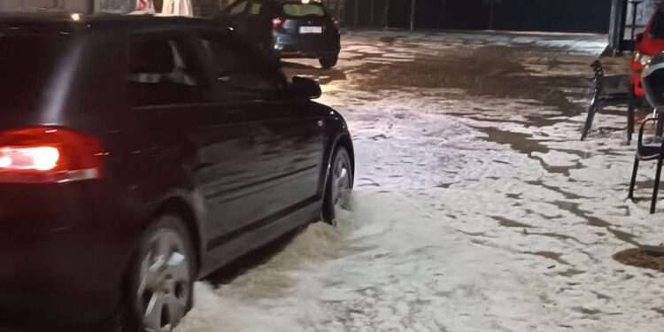Κώμη, τώρα, βροχή με χοντρό χαλάζι