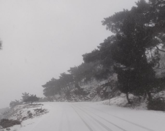 Χιόνια έχουν κάνει την εμφάνισή τους μέχρι τις μία το μεσημέρι στην περιοχή Αίπους, Αγ. Ισίδωρου, Καρυές, ναυτικό φυλάκιο.