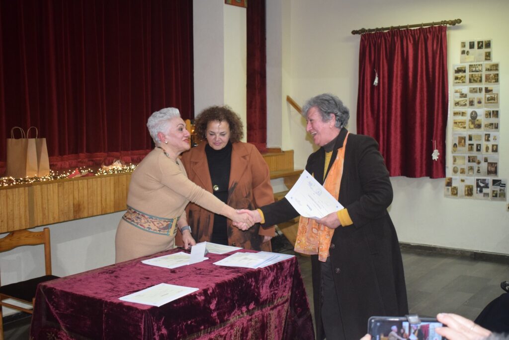 Η Πρόεδρος κ. Μαριέλα Βαρώνη αναφέρθηκε στο πολύπλευρο και πολυσχιδές έργο των εργαστηρίων που σε συνεργασία με τον Φάρο Βαρβασίου πολλών ετών που ξεκίνησε από το 1987 και ευχαρίστησε τους δύο Ιερείς που ευλόγησαν την βασιλόπιτα. Ιδιαίτερη αναφορά και ξεχωριστή βράβευση στις μικρές μαθήτριες των εργαστηρίων.