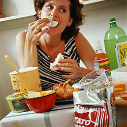 Ένα ποσοστό ατόμων όταν υποβάλλονται σε οξύ στρες τροποποιούν τη διατροφική τους συμπεριφορά ως απάντηση στο στρεσογόνο ερέθισμα. Αυτή η αλλαγή μπορεί να περιλαμβάνει μείωση ή αύξηση της καταναλισκόμενης τροφής, σε ποσοστό 30% και 70% αντίστοιχα. Ωστόσο, ανεξάρτητα από την ποσότητα της τροφής που θα καταναλωθεί, οι διατροφικές επιλογές στρέφονται προς μια σταθερή κατεύθυνση και πιο συγκεκριμένα προς την κατανάλωση υψηλών σε θερμίδες, και κυρίως σε λίπος, τροφίμων (τύπου σνακ, με γλυκιά γεύση).
