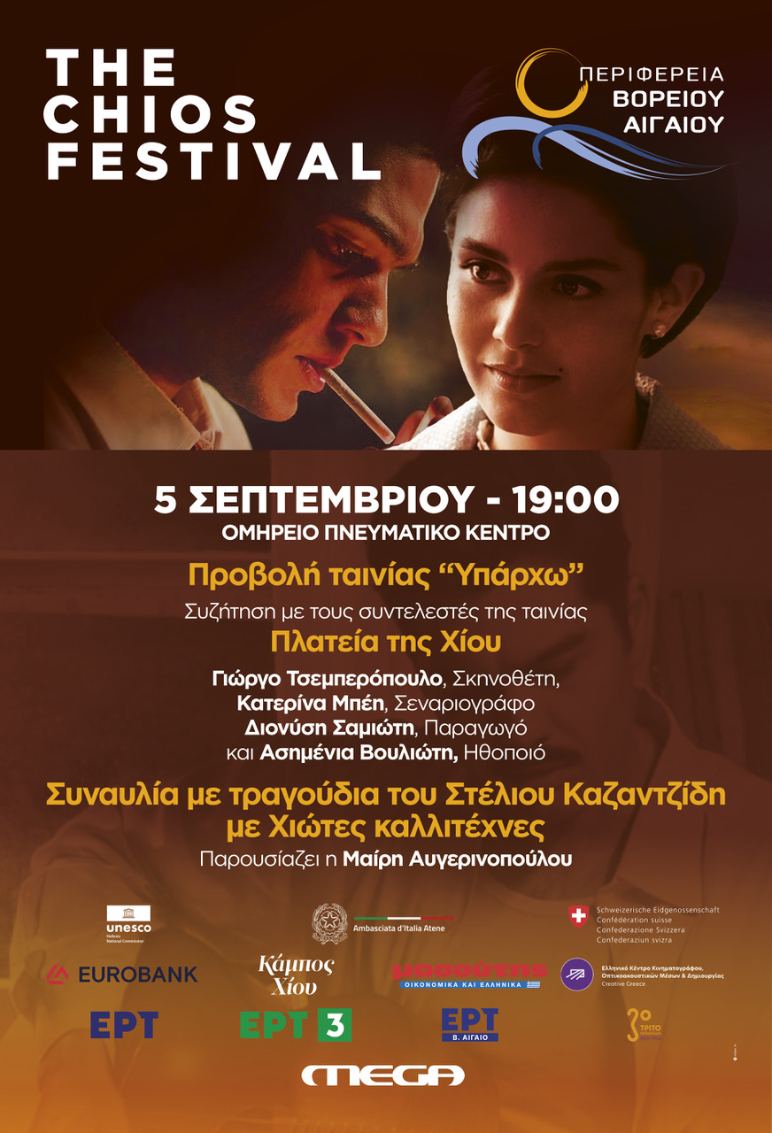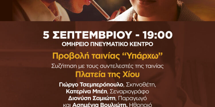 Παρασκευή 5 Σεπτεμβρίου, 19:00 – Προβολή ταινίας «Υπάρχω» στο Ομήρειο Πνευματικό Κέντρο και μουσική βραδιά στην Πλατεία της Χίου